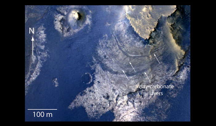 Другое открытие сделало Национальное аэрокосмическое агентство США (NASA) по снимкам, полученным орбитальным аппаратом Mars Reconnaissance Orbiter. Спектроскопическая съемка обнаружила на дне кратера Маклафлин 2,2 км глубиной и 92 км диаметром признаки отложений карбонатов и глинистых минералов, характерных для дна водоемов. Находка с высокой вероятностью указывает на то, что в далеком прошлом кратер был наполнен водой.
