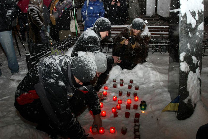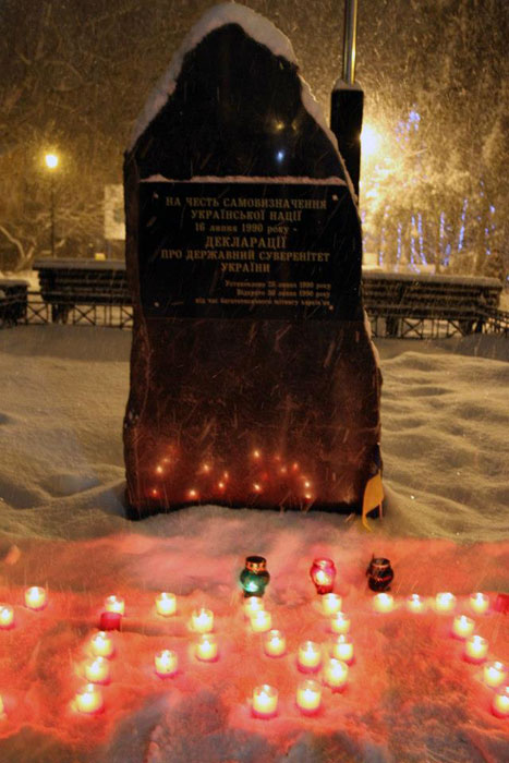Сегодня в центре Харькова почтили память Героев Крут. Мероприятие проходило в саду им. Т. Шевченко у памятного знака в честь самоопределения украинской нации. Организатор - Союз украинской молодежи.