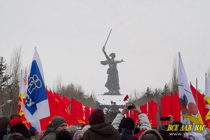 "Почтить память солдат, погибших под Сталинградом, пришли люди всех возрастов, самым юным нет и года, старшему поколению, ветеранам Великой Отечественной войны – многим уже за 90", - сообщает Volgograd-trv.