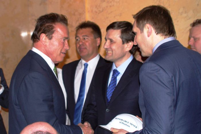 В ходе конференции Шишацкий и заместитель председателя Донецкой областной государственной администрации Александр Фоменко подарили Шварценеггеру каску с надписью «Почетный шахтер Донбасса», отмечают Новости Донбасса. О реакции Шварценеггера на столь "значимое и почетное" звание, а также "очень важный" подарок не сообщается.
