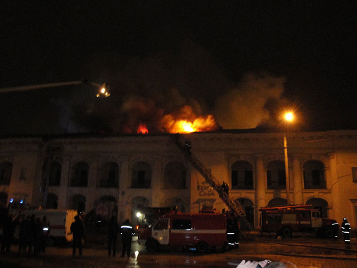 Как сообщили агентству "Интерфакс-Украина" активисты Коалиции участников помаранчевой революции (КУПР), которые мирно протестуют в здании против уничтожения Гостиного двора в Подольском районе г.Киева, пожар очень сильный.