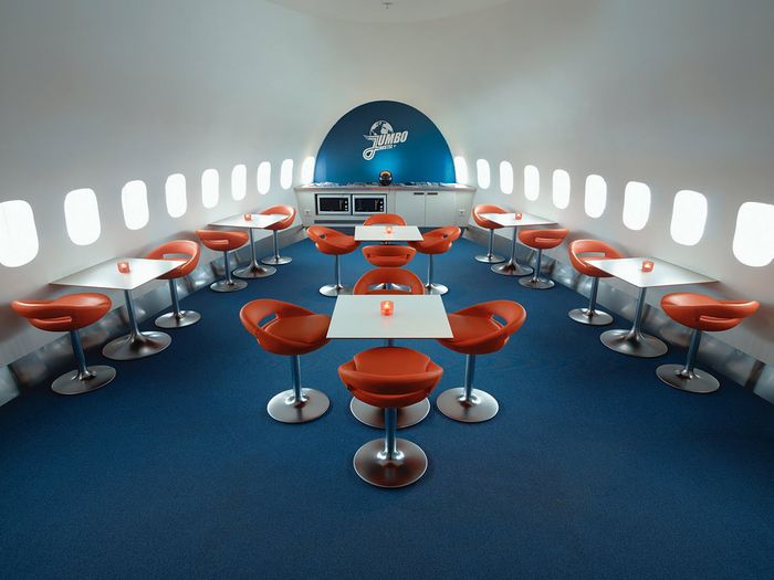 Создатели отеля сохранили многие детали интерьера самолета, даже кислородные маски.