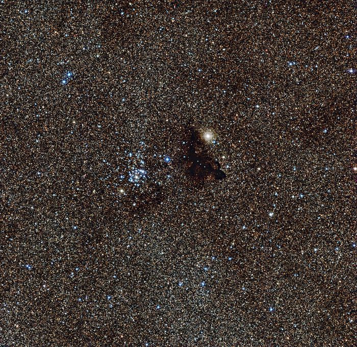 Камера Wide Field Imager на 2.2-метровом телескопе MPG/ESO в Европейской южной обсерватории Ла Силья в Чили получила изображение яркого звездного скопления NGC 6520 и его соседа, странного темного облака Barnard 86, имеющего очертания ящерицы-геккона. Эта пара видна на фоне миллионов звезд в самой яркой части Млечного Пути.