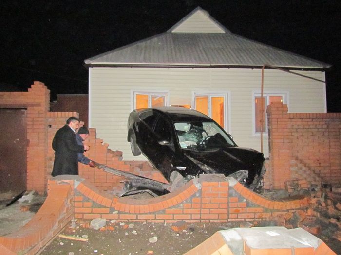 "Автомобиль, казалось, взлетел в воздух, потом зацепил бетонную колонну, затем деревянный забор, далее дорожный знак и, перелетая через улицу, развернулся на 180 градусов, и, "снижаясь", разгромил кирпичный забор и "приземлился" практически в оконном проеме. Хозяевам дома теперь придется полностью заменить пластиковые окна, сайдинговую обшивку стены и укрепить саму стену", - рассказал 0629 один из очевидцев.