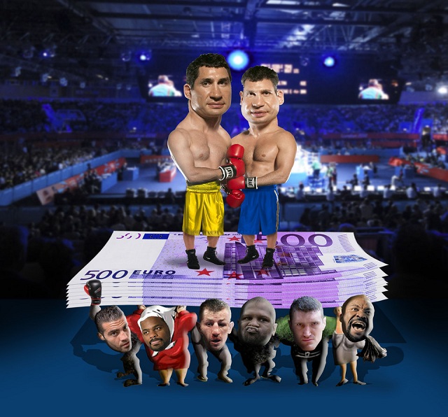 Но на этом творчество россиян не завершилась. На последнем шарже оба брата Кличко стоят на горе купюр достоинством в 500 евро, а держат их битые соперники: Мануэль Чарр, Тони Томпсон, Томаш Адамек, Кевин Джонсон, Мариуш Вах, Шеннон Бриггс. Этот шарж получил название «Большие деньги и слабые соперники братьев Кличко».