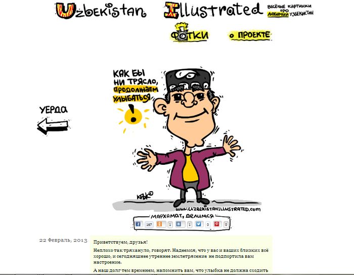 Страница популярной узбекской сатиры “Uzbekistan Illustrated” в Facebook, имеющей более 5 тыс. последователей и создатели которой живут в США, также отреагировала на данное событие, разместив очередную иллюстрацию.