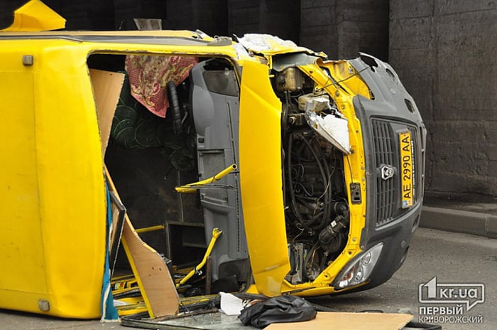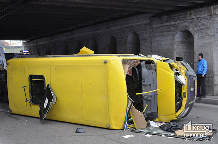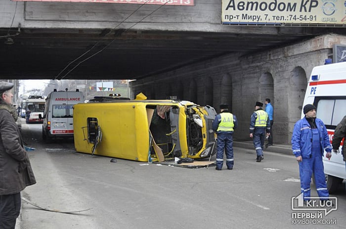 В Кривом Роге маршрутка врезалась в опору моста (+фото)