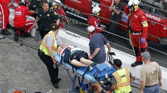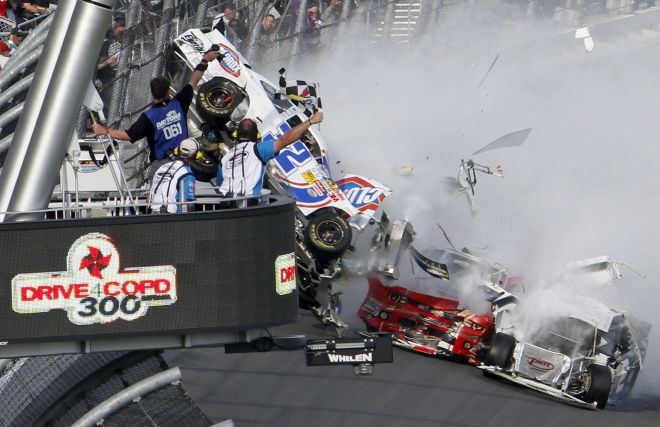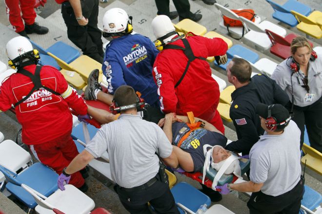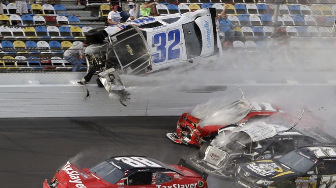 Associated Press сообщает, что зрители пострадали от обломков, разлетевшихся при столкновении десяти гоночных автомобилей на соревнованиях гоночной ассоциации NASCAR.