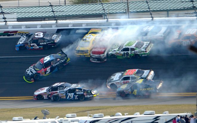 Столкновение произошло всего за несколько секунд до финиша первого автогонщика Рейгана Смита, который пытался блокировать автомобиль рвущегося к финишу Брэда Казеловского. Из-за этого маневра новичок сезона Кайл Ларсон врезался в соседние автомобили.