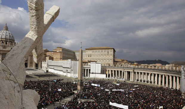 Площадь Святого Петра в Ватикане заполонили более 200 тысяч паломников и туристов, которые пришли послушать последнее обращение Папы, пишет Корреспондент.
