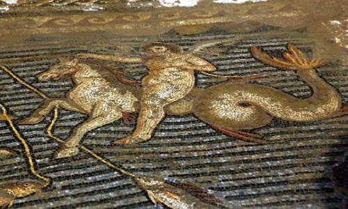 Турецкие археологи на месте недавно найденной древней виллы обнаружили уникальную мозаику. Археологи склонны считать, что на ней изображен древнегреческий бог любви Эрос, который оседлал гиппокампа - мифическую морскую лошадь с рыбьим хвостом. Эрос на мозаике ловит рыбу. Специалисты датировали находку четвертым-пятым веками нашей эры. Мозаика выполнена из стекла, мрамора и простого камня.