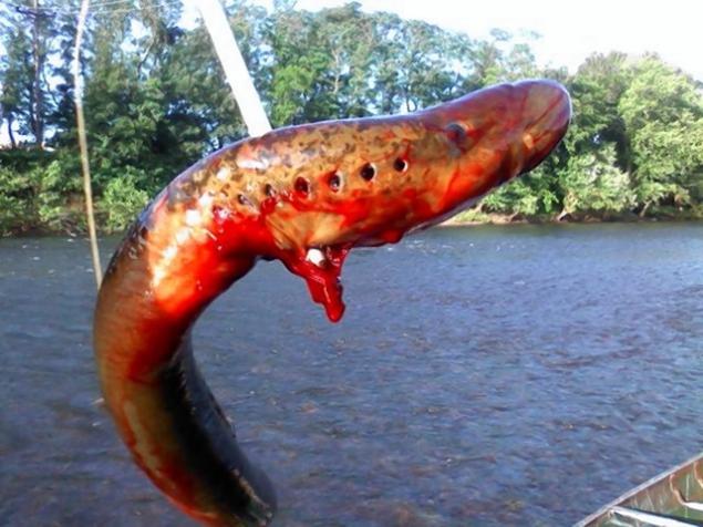 Фотографии угря-монстра, пойманного в американском штате Нью-Джерси, набирают миллионы просмотров в соцсетях. Эти кадры будто вырезаны из фантастического фильма: на них запечатлено непонятное окровавленное существо с открытой пастью, усыпанной острыми зубами.