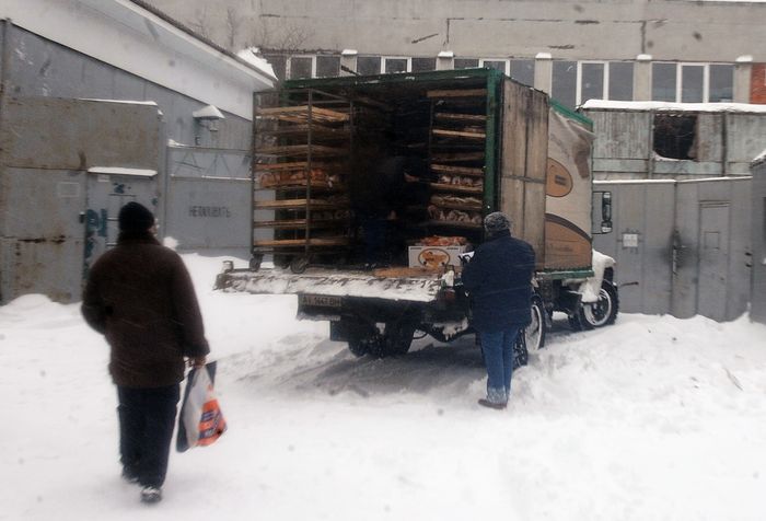 Она также отметила, что очередь собралась потому что с минуты на минуту должны подвезти хлеб.