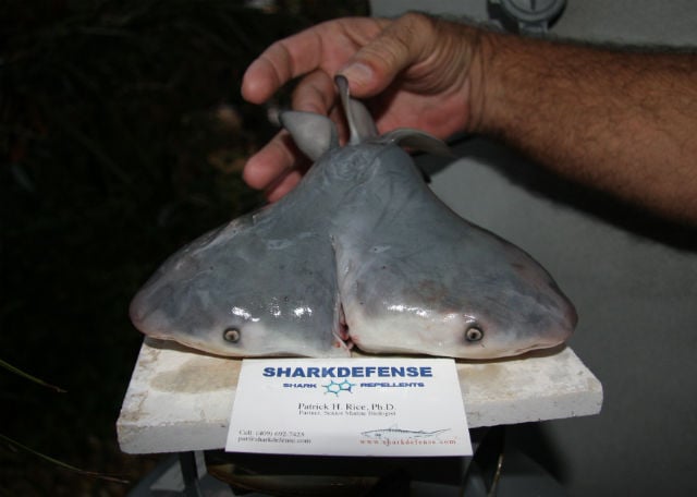 Американские рыбаки, работавшие на промысловом судне близ побережья Флориды, столкнулись с необычным феноменом. В животе у одной из акул, попавшей в их сети, оказался двухголовый плод.