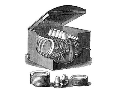 В 1889 году в Чикаго появилась в продаже первая посудомоечная машина, созданная Джозефиной Кокрейн. Внешне он был похож на стиральные машины тех лет и представлял собой круглую деревянную бадью с металлической осью посередине. На ось сверху одевалась решетчатая корзина, в которую по кругу устанавливались тарелки. Снизу к оси шел привод от парового двигателя, турбина которого помимо того, что вращала корзину с посудой, еще и одновременно кипятила воду для мытья.
