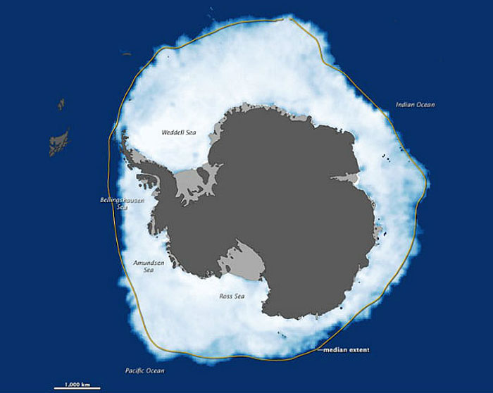 "Шапка" заново замерзает в осенне-зимний период и тает, когда наступает лето. В середине зимы площадь ледника составляет 11,7 миллиона квадратных километров, что больше земной части Антарктиды. С 1985 года антарктическое море увеличилось на 1,9%.