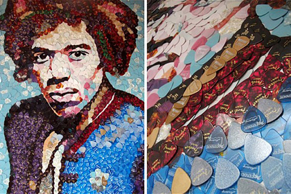 Британский художник Эд Чепмэн создал мозаичный портрет гитариста Джими Хендрикса из четырех тысяч разноцветных гитарных медиаторов Fender. Об этом сообщает Лента.ру со ссылкой на The Daily Telegraph.