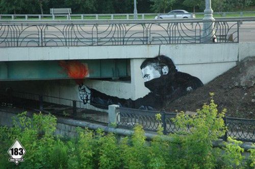 Вообще-то, отмечает Radio Free Europe, Паша 183 предшествовал Бэнкси. Свое первое граффити он создал 15 лет назад. Он написал сотни иллюстраций с глубоким смыслом, большей частью – в родной для него Москве.