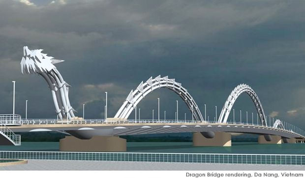 Арки моста Dragon Bridge выполнены в виде туловища дракона времен династии Ли. Из головы дракона исходит огонь, что вместе с 2.5 тыс. светодиодами, придает мосту сверхъестественный вид в ночное время. Дракон может также выбрасывать в воздух струи воды. Мост был спроектирован американской компанией Louis Berger Group.