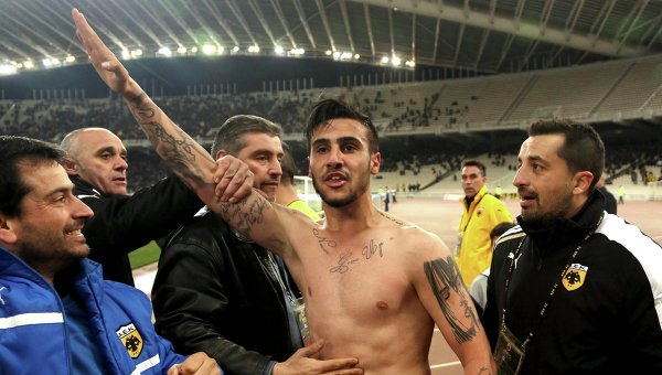 Полузащитника афинского футбольного клуба «АЕК» Гиоргоса Катидиса отстранили от участия в пяти матчах и оштрафовали на одну тысячу евро. Кроме того, ему запретили появляться на стадионах. Напомним, в прошлом месяце после забитого гола в матче с «Верией» Катидис поприветствовал болельщиков в нацистской манере.
