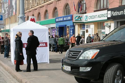 Сегодня волонтеры "Батькивщины" из палаток раздавали харьковчанам приглашение на завтрашнее мероприятие.
