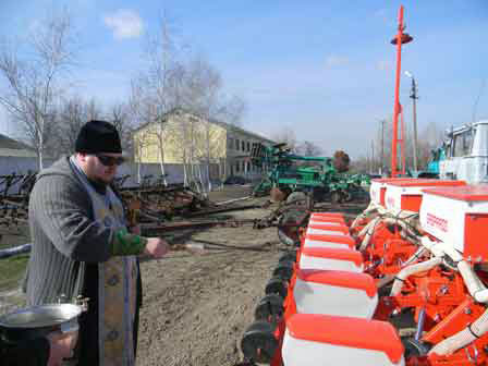 Технику, посевной материал благословил иерей храма Успения Пресвятой Богородицы отец Александр.
