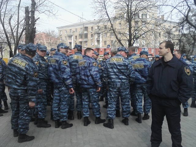 В 10.45 на площади Руднева в Харькове, где расположено здание Апелляционного суда и где сегодня продолжится заседание по т.н. "второму делу" Тимошенко, появилось подразделение людей в форме частной охранной фирмы. Как передает МедиаПорт, "охранников" около полусотни человек и надписями на шевронах «Охрана и безопасность».