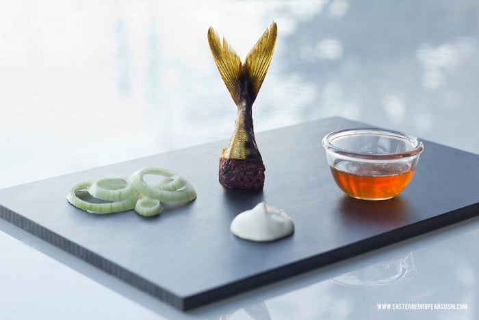 В первую очередь речь идет о русской, белорусской и украинской кухне. Ребята из студии Clinic 2012 адаптировали привычные нам кулинарные «изыски» под модные нынче на Западе японские блюда – суши и роллы.