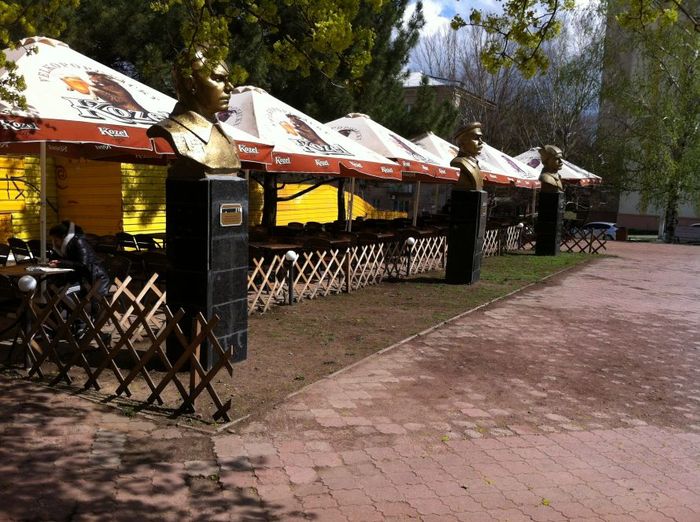 В Луганске в сквере имени 30-летия ВЛКСМ за памятниками молодогвардейцев поставили летнюю площадку, в которой продают пиво "Козел", пишет 0642 со ссылкой на своего читателя, приславшего в редакцию фото.