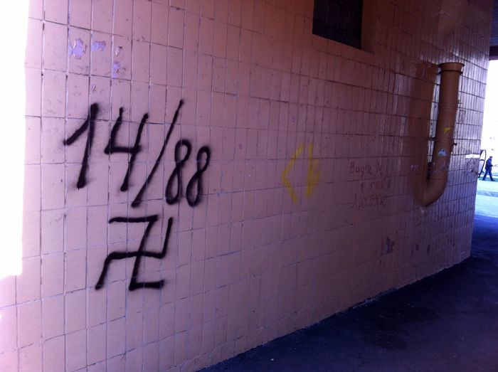 Недавно на стене в арке многоэтажки по Полтавскому шляху, 148/2, появился немецкий крест и надпись «White power» (с англ. — «белая власть»). «Ну ладно, какие-то идиоты чего-то начитались, насмотрелись и загадили наши стены, но власти-то куда смотрят? Неужели нужно много краски, сил, времени, чтобы это зарисовать?» — возмущается пенсионерка Лидия Ивановна.