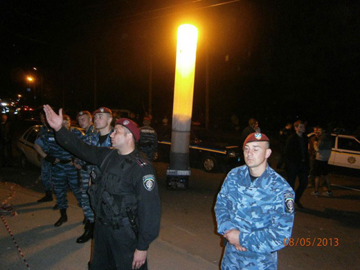 Издание сообщает также, что машину инспектора забросали яйцами и, чтобы успокоить толпу, милиции якобы пришлось применить слезоточивый газ.