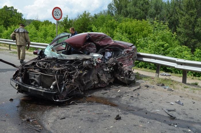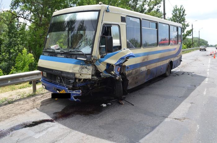 ДТП произошло около часа дня возле Чугуева. Иномарка ехала со стороны Изюма и по неизвестным причинам выехала на «встречку» и столкнулась с автобусом.