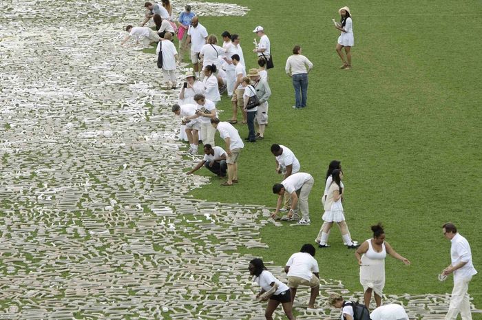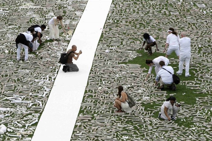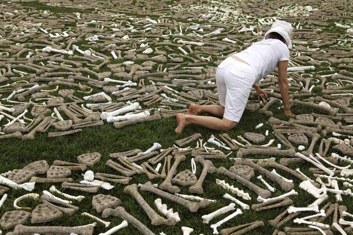 "Мы выкладываем кости здесь, чтобы создать символическое массовое захоронение и использовать этот символ - кости, - чтобы засвидетельствовать тяжесть этих кризисов. Но еще более важно - напомнить, что все мы люди. В этом проекте большой образовательный компонент. Это способ проинформировать людей о том, что происходит. Сделав кость, они тем самым могут выразить свой опыт и создать материальное выражение своего голоса", - сказала основатель проекта One Million Bones (Миллион костей) и автор инсталляции, художник Наоми Натале.