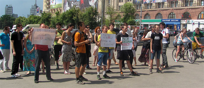 В Харькове активисты общественных организаций провели пикет на площади Свободы перед зданием облгосадминистрации с требованием не допустить принятия законопроекта 2450 "О свободе мирных собраний".