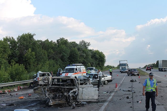 По информации Управления ГАИ МВД Украины, роковое столкновение сразу трех авто произошло 16 июля, в 16 часов 15 минут, на 108 км автодороги Киев-Одесса.