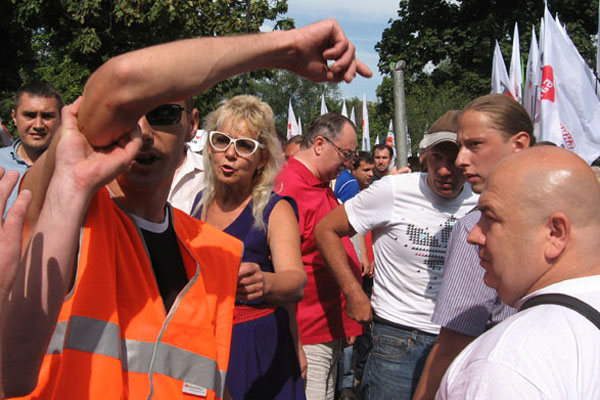Молоді люди спортивної статури в помаранчевих жилетах намагалися зірвати мітинг прихильників Юлії Тимошенко