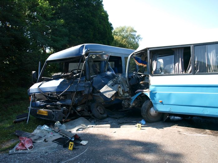 Накануне возле с. Кордышев Шумского района Тернопольской области в 8 час. 20 мин. на автодороге Острог-Радивилов результате столкновения двух маршрутных микроавтобусов, которые перевозили 35 пассажиров, пострадали 20 человек, в том числе 2 ребенка (2004 и 2007 г.р.). Как сообщили в ГСЧС, пострадавшие с травмами разных степеней тяжести госпитализированы.