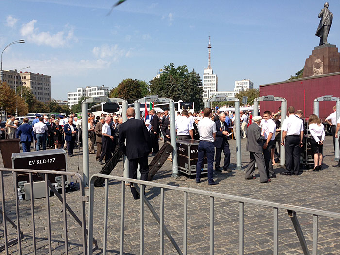 "Пройти на площадь также трудно, как трудно было освобождать Харьков", - шутят ветераны. Им приходится проходить через рамки металлодетектора.