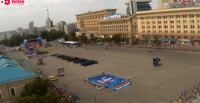 На площади Свободы в Харькове начались торжества, посвященные 70-летию освобождения города от фашистских захватчиков.