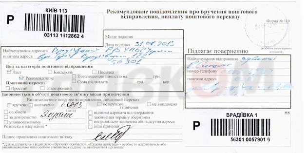 Адвокатский запрос в милиции получили 6 августа 2013. Это подтверждает сообщение о вручении почтового отправления. Но ответили на него с запозданием. Документ-ответ датирован 13 августа 2013. Плюс, адвокат нашел его в своем почтовом ящике - без уведомления о вручении должным образом.