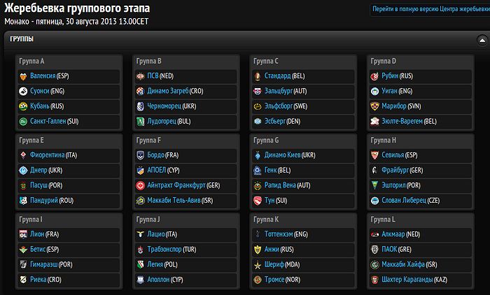 Результаты жеребьевки группового этапа Лиги Европы