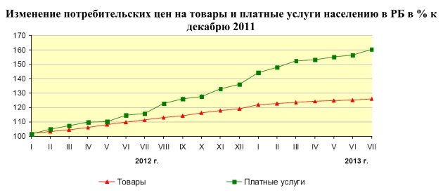 Создание ТС привело к росту цен на отдельные группы товаров. Это происходит с одной стороны из-за того, что рост таможенных тарифов приводит к росту цен на товары, импортируемые из третьих стран. А с другой стороны, из-за выравнивания цен внутри ТС. Как результат, Казахстан вынужден прибегать почти к фиксации цен на социально значимые товары, вводить государственное регулирование цен. На рынке наблюдается существенный рост первоочередных товаров на фоне снижения покупательной способности. Так, в РБ наблюдается постоянный высокий рост инфляции, который по итогам 2012 года составил 36,1%.