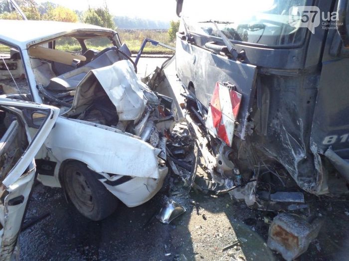 В результате ДТП водитель автомобиля ВАЗ-21114 погиб на месте ДТП, водитель "Девятки" и два его пассажира (мужчины 53-х и 25-ти лет) с телесными повреждениями доставлены в 4-ю больницу Харькова.
