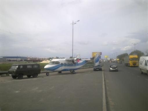 Сегодня киевляне, проезжавшие по Жулянскому мосту, увидели необычную картину. Сотрудники ГАИ оформляли ДТП с участием легковушки…и небольшого самолета.