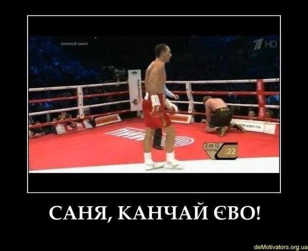 Также нардеп разместил на своей странице демотиватор со стопкадром поединка Кличко-Поветкин: "Этот демотиватор не на Поветкина. Ни в коем случае. Александр как раз четко и однозначно признал победу Владимира Кличко ... Этот демотиватор для тех, кто сейчас рассказывает о "нечестности" победы Кличко. Особенно, для малоизвестных российских боксеров, которые сейчас активно комментируют бой в СМИ.