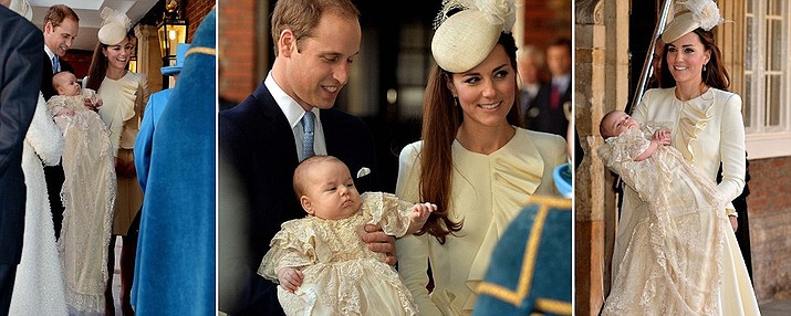 Трехмесячный сын принца Уильяма и Кейт Миддлтон во время церемонии был одет в кружевное крестильное платье, копию наряда, который надевали на младенцев королевской семьи с 1841 года (в подобных платьях крестили более 60 членов монаршей династии Великобритании).