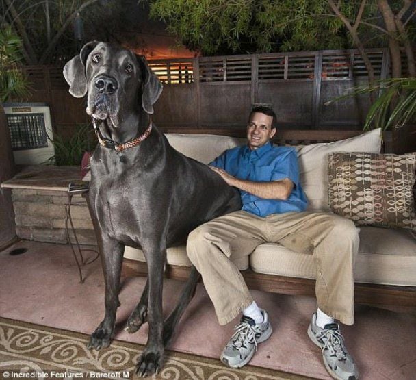 Голубой немецкий дог стал рекордсменом Книги Гиннеса еще в 2010 году. Его длина от когтей до холки составляла 1 метр 3 сантиметра, а если он становился на задние лапы - 2 метра 38 сантиметров.