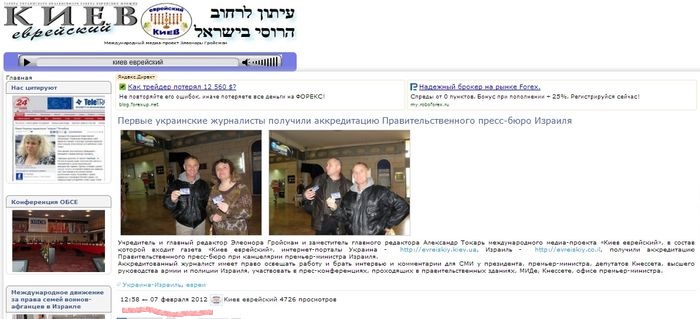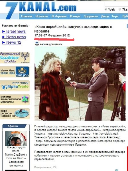 Как отметила Гройсман в комментарии Главному, В этот же день, 7 февраля 2012 г., 7 канал Израиля поздравил украинских коллег из «Киева еврейского» с получением правительственной аккредитации.