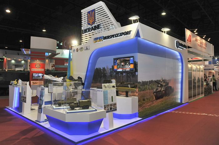 Национальная экспозиция Украины формируют предприятия, находящиеся в сфере управления “Укроборонпрома”: ГК “Укрспецэкспорт”, ГП “Укроборонсервис”, ГП “Государственное Киевское конструкторское бюро “Луч”, ГП “Одесский авиационный завод”, ГП “Опытно-конструкторское бюро авиации общего назначения”, ГП “Харьковский завод специальных машин”, ОАО “Феодосийская судостроительная компания “Море”.
