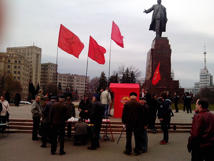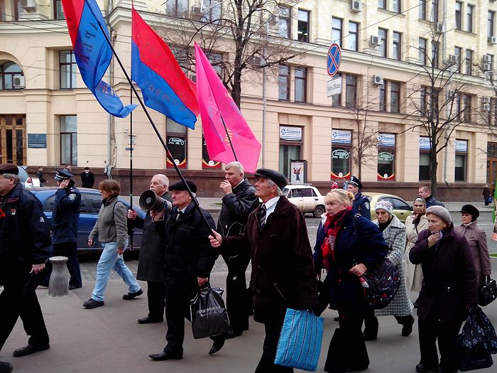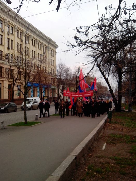Организации крайне левого толка вывели в центр города своих сторонников. С утра 96-ю годовщину Великого Октября праздновали сторонники ПСПУ и левые радикалы из "Боротьбы".